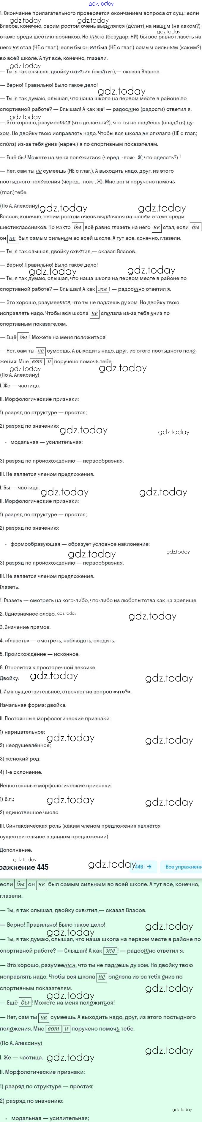 На страницах сайта gdz.today вы найдете учебный и вспомогательный материал, направленный на улучшения знаний школьной программы. ГДЗ - онлайн мир знаний Решение. Упражнения 445 Учебнику по Русскому языку для 7 класса Баранов, Ладыженская Просвещение, Просвещение 2015, 2022