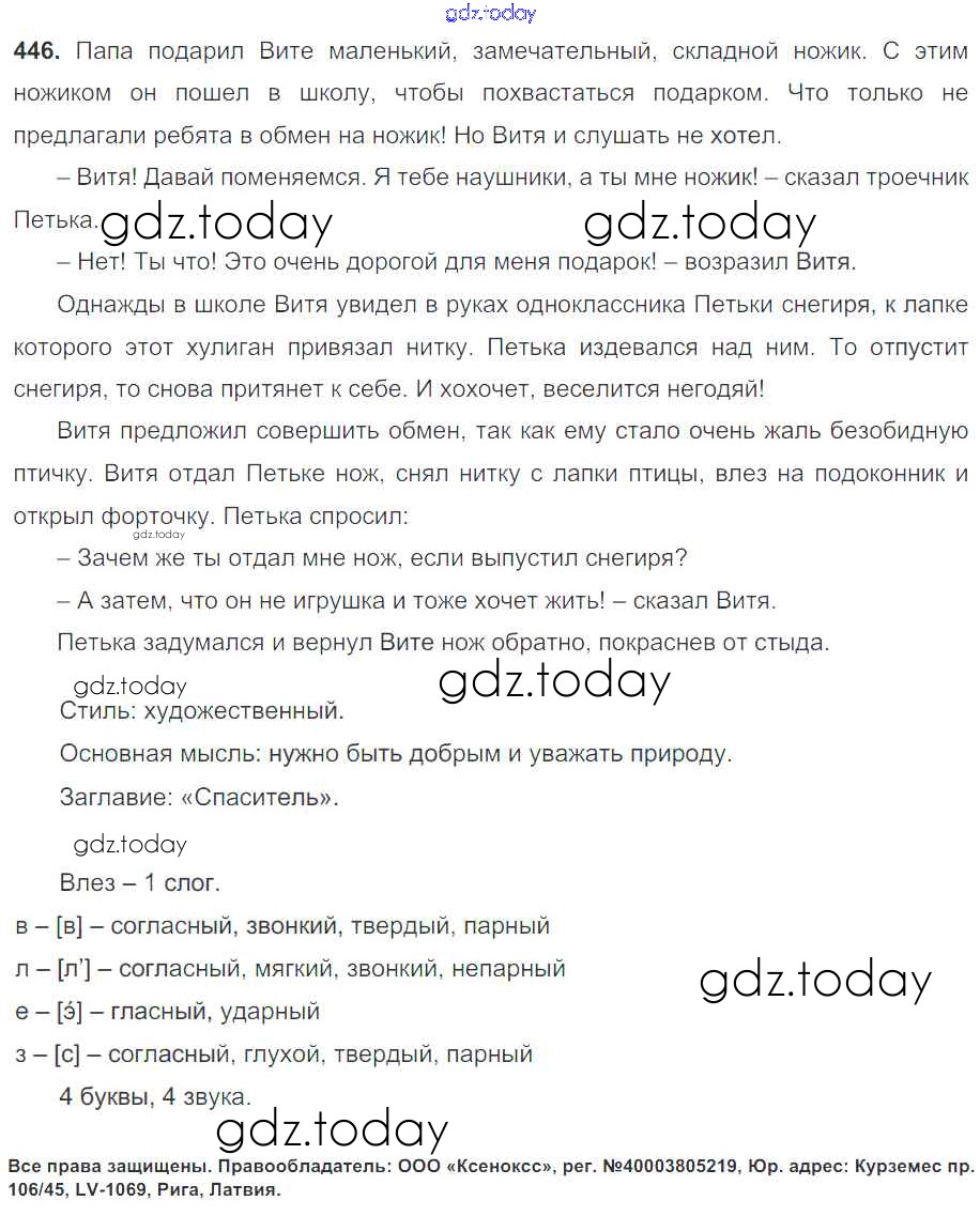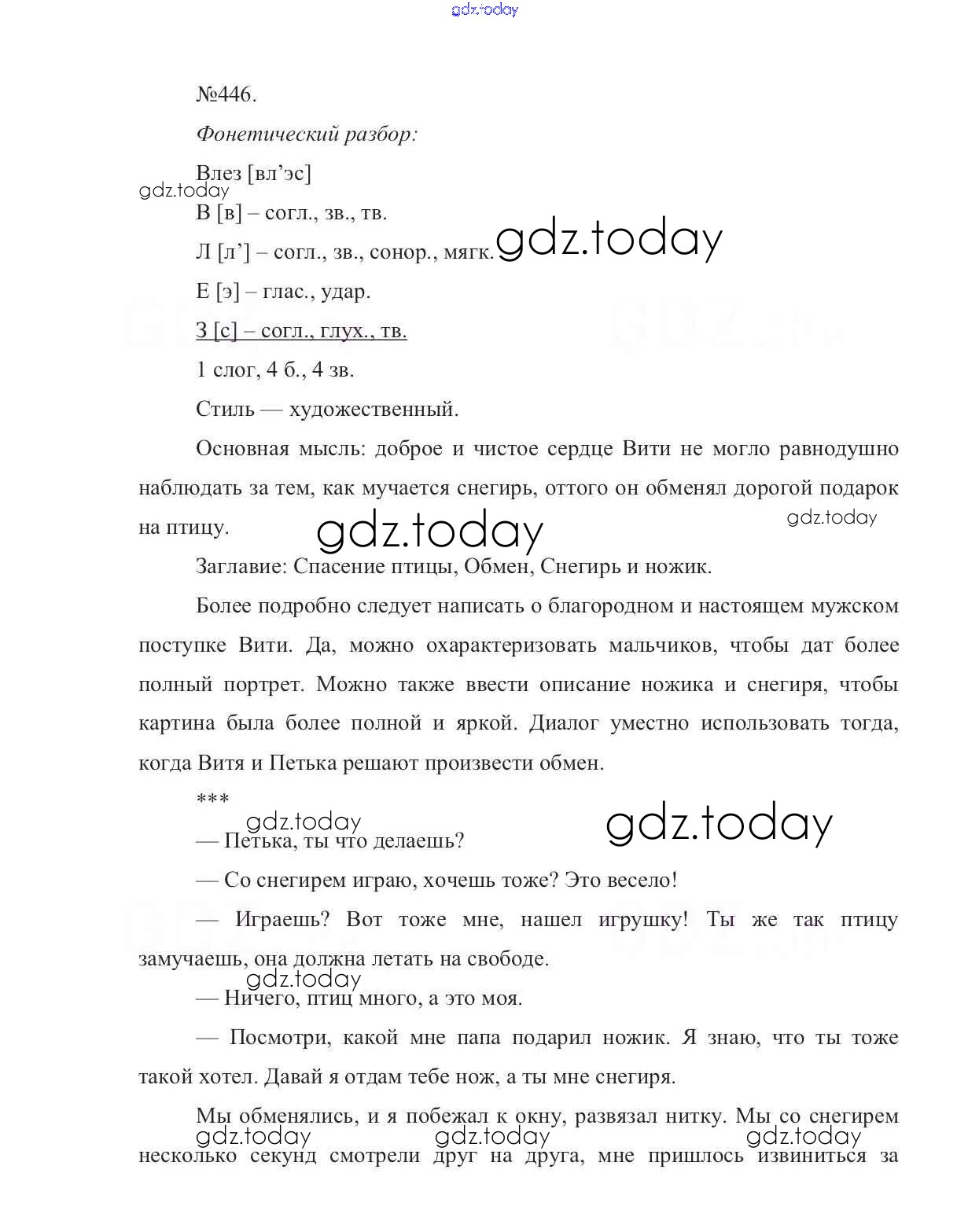 На страницах сайта gdz.today вы найдете учебный и вспомогательный материал, направленный на улучшения знаний школьной программы. ГДЗ - онлайн мир знаний Решение к упражнениям 446 Учебнику по Русскому языку для 7 класса Баранов, Ладыженская Просвещение УМК 2015