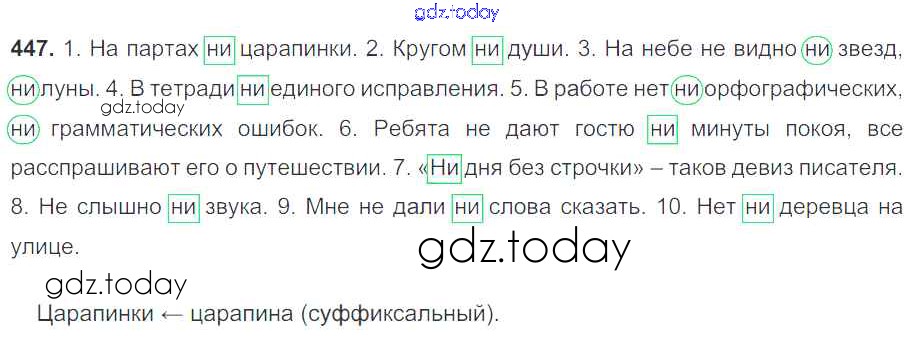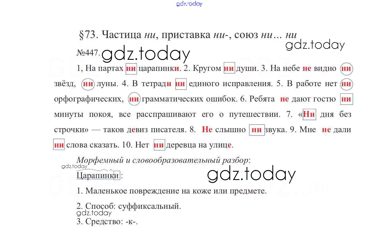 На страницах сайта gdz.today вы найдете учебный и вспомогательный материал, направленный на улучшения знаний школьной программы. ГДЗ - онлайн мир знаний Решение к упражнениям 447 Учебнику по Русскому языку для 7 класса Баранов, Ладыженская Просвещение УМК 2015