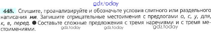 На страницах сайта gdz.today вы найдете учебный и вспомогательный материал, направленный на улучшения знаний школьной программы. ГДЗ - онлайн мир знаний Решение к упражнениям 448 Учебнику по Русскому языку для 7 класса Баранов, Ладыженская Просвещение УМК 2015