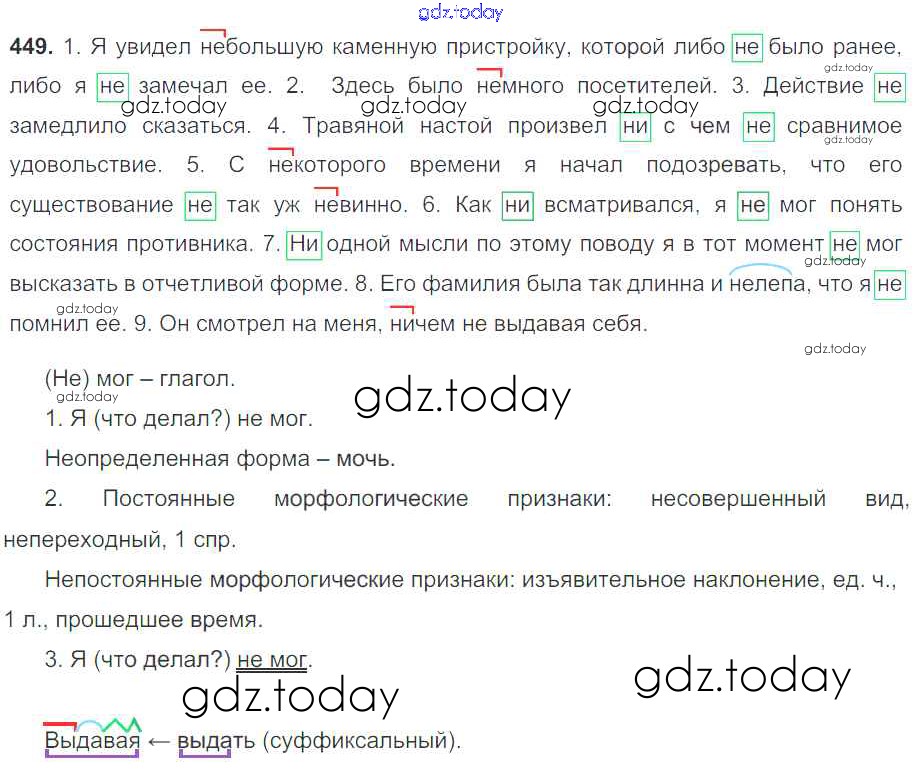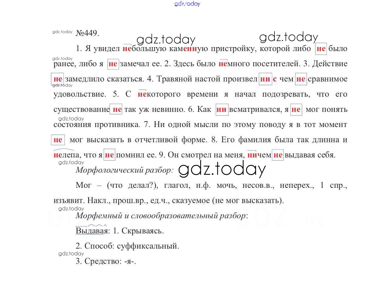 На страницах сайта gdz.today вы найдете учебный и вспомогательный материал, направленный на улучшения знаний школьной программы. ГДЗ - онлайн мир знаний Решение к упражнениям 449 Учебнику по Русскому языку для 7 класса Баранов, Ладыженская Просвещение УМК 2015