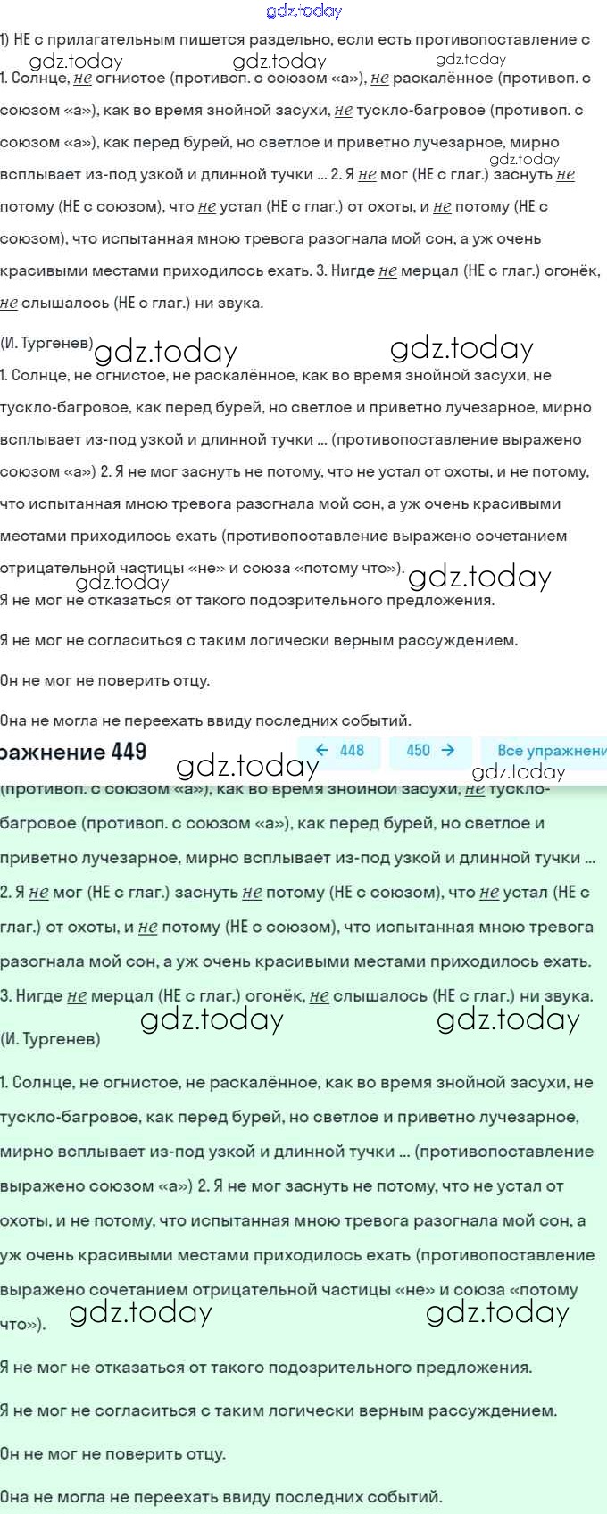 На страницах сайта gdz.today вы найдете учебный и вспомогательный материал, направленный на улучшения знаний школьной программы. ГДЗ - онлайн мир знаний Решение. Упражнения 449 Учебнику по Русскому языку для 7 класса Баранов, Ладыженская Просвещение, Просвещение 2015, 2022
