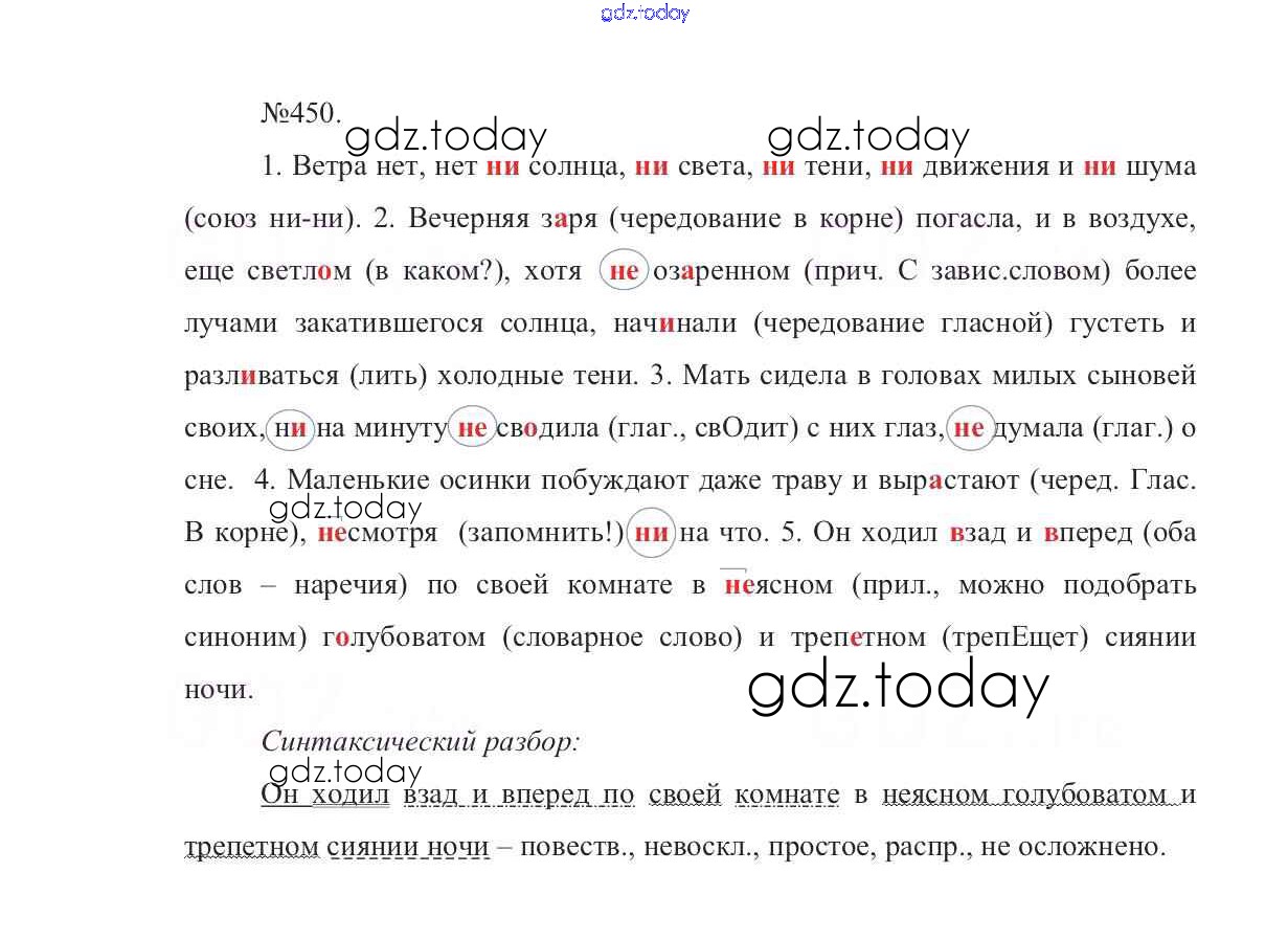 На страницах сайта gdz.today вы найдете учебный и вспомогательный материал, направленный на улучшения знаний школьной программы. ГДЗ - онлайн мир знаний Решение к упражнениям 450 Учебнику по Русскому языку для 7 класса Баранов, Ладыженская Просвещение УМК 2015