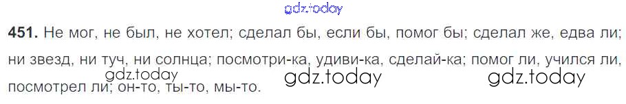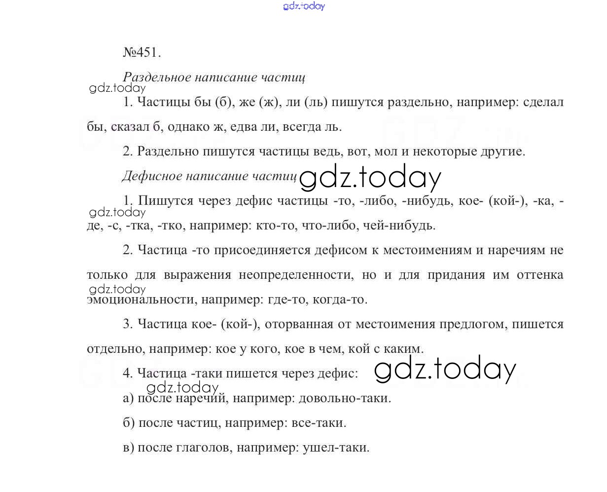 На страницах сайта gdz.today вы найдете учебный и вспомогательный материал, направленный на улучшения знаний школьной программы. ГДЗ - онлайн мир знаний Решение к упражнениям 451 Учебнику по Русскому языку для 7 класса Баранов, Ладыженская Просвещение УМК 2015