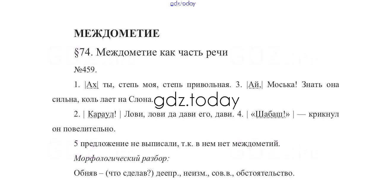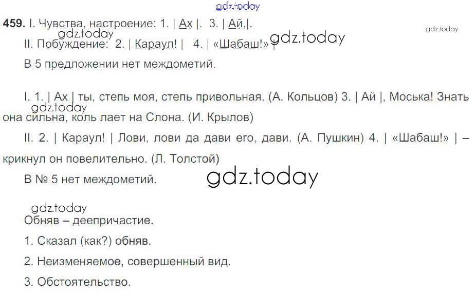 На страницах сайта gdz.today вы найдете учебный и вспомогательный материал, направленный на улучшения знаний школьной программы. ГДЗ - онлайн мир знаний Решение к упражнениям 459 Учебнику по Русскому языку для 7 класса Баранов, Ладыженская Просвещение УМК 2015