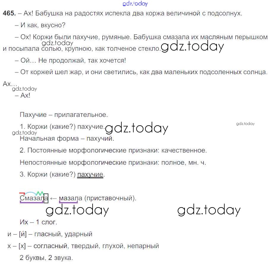 На страницах сайта gdz.today вы найдете учебный и вспомогательный материал, направленный на улучшения знаний школьной программы. ГДЗ - онлайн мир знаний Решение к упражнениям 465 Учебнику по Русскому языку для 7 класса Баранов, Ладыженская Просвещение УМК 2015