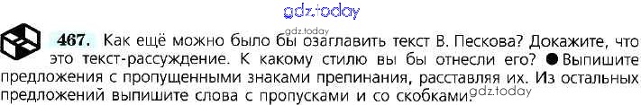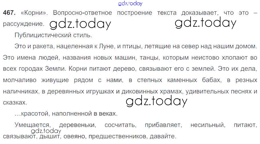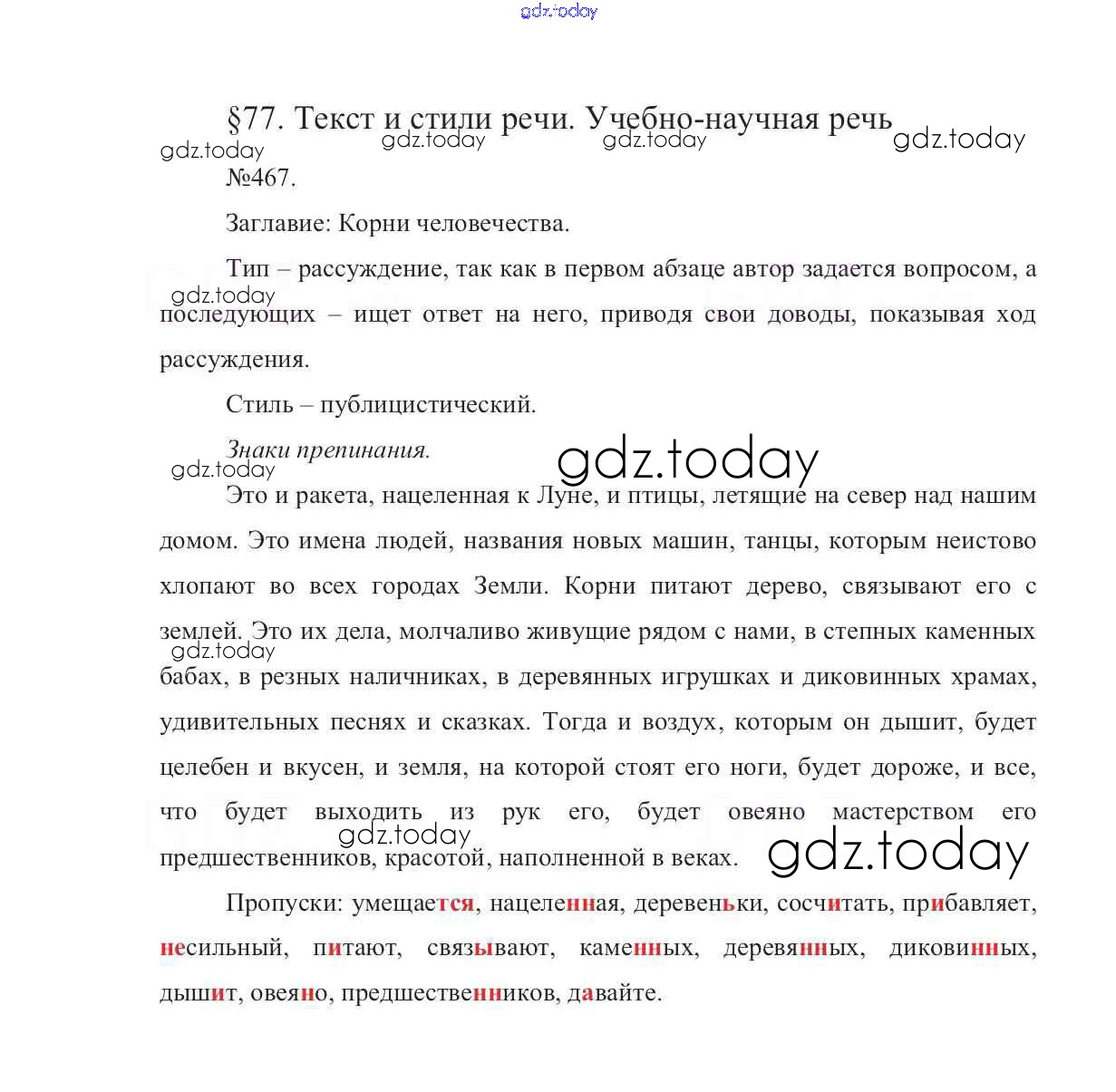 На страницах сайта gdz.today вы найдете учебный и вспомогательный материал, направленный на улучшения знаний школьной программы. ГДЗ - онлайн мир знаний Решение к упражнениям 467 Учебнику по Русскому языку для 7 класса Баранов, Ладыженская Просвещение УМК 2015