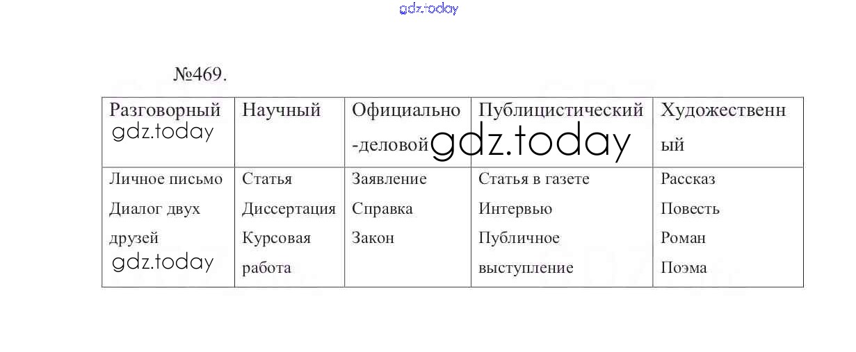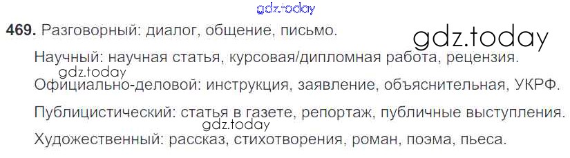 На страницах сайта gdz.today вы найдете учебный и вспомогательный материал, направленный на улучшения знаний школьной программы. ГДЗ - онлайн мир знаний Решение к упражнениям 469 Учебнику по Русскому языку для 7 класса Баранов, Ладыженская Просвещение УМК 2015