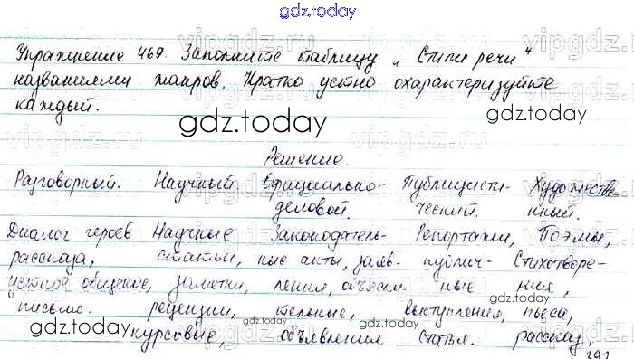 На страницах сайта gdz.today вы найдете учебный и вспомогательный материал, направленный на улучшения знаний школьной программы. ГДЗ - онлайн мир знаний Решение. Упражнения 469 Учебнику по Русскому языку для 7 класса Баранов, Ладыженская Просвещение, Просвещение 2015, 2022
