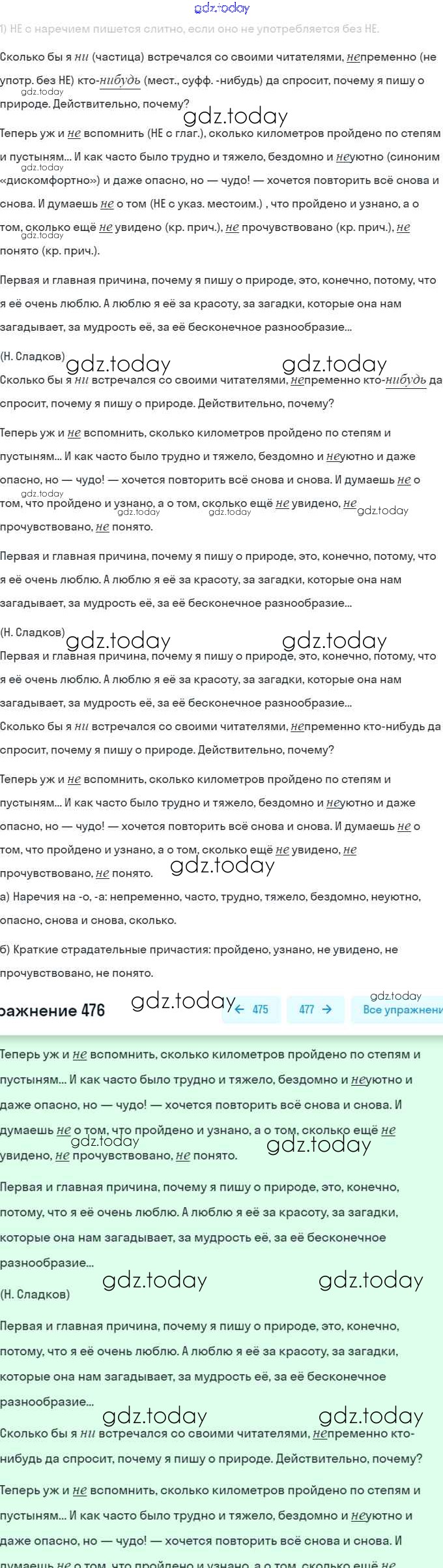 На страницах сайта gdz.today вы найдете учебный и вспомогательный материал, направленный на улучшения знаний школьной программы. ГДЗ - онлайн мир знаний Решение. Упражнения 476 Учебнику по Русскому языку для 7 класса Баранов, Ладыженская Просвещение, Просвещение 2015, 2022