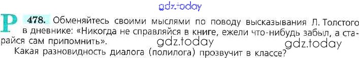 На страницах сайта gdz.today вы найдете учебный и вспомогательный материал, направленный на улучшения знаний школьной программы. ГДЗ - онлайн мир знаний Решение к упражнениям 478 Учебнику по Русскому языку для 7 класса Баранов, Ладыженская Просвещение УМК 2015
