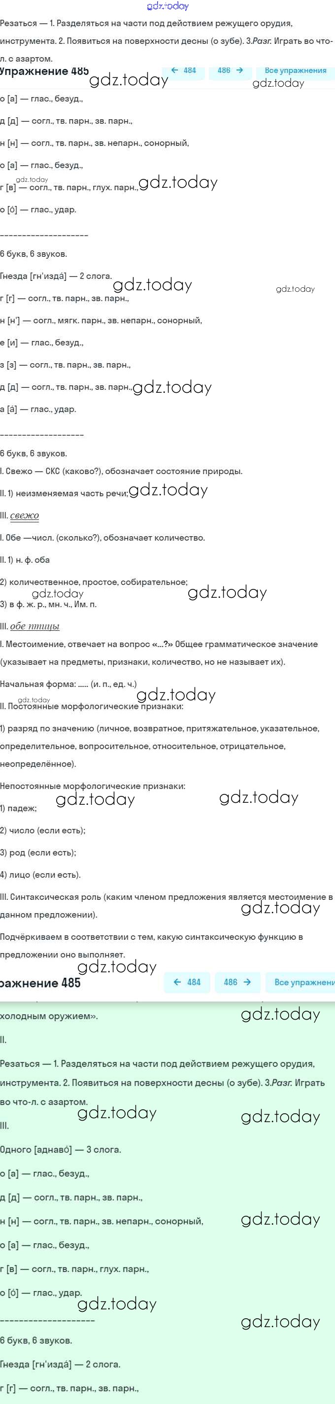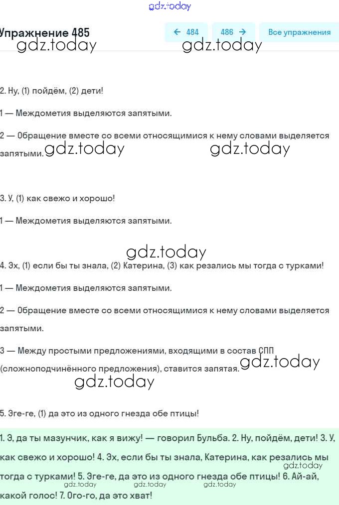 На страницах сайта gdz.today вы найдете учебный и вспомогательный материал, направленный на улучшения знаний школьной программы. ГДЗ - онлайн мир знаний Решение. Упражнения 485 Учебнику по Русскому языку для 7 класса Баранов, Ладыженская Просвещение, Просвещение 2015, 2022