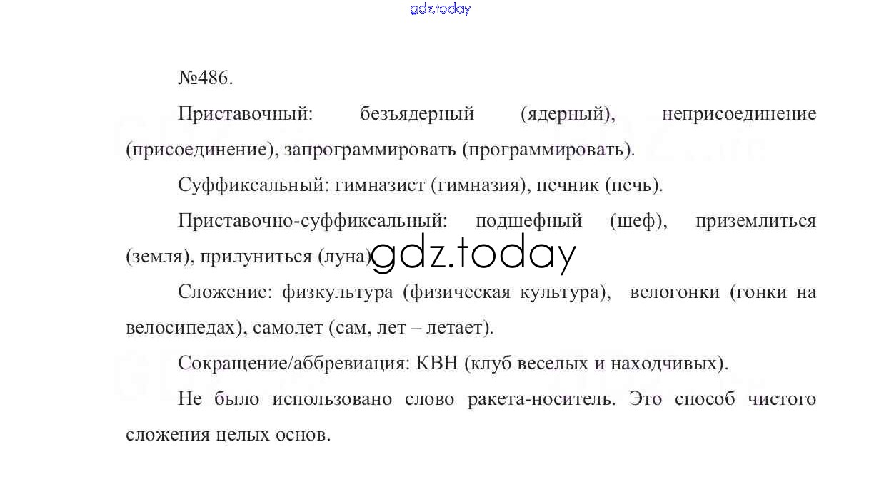 На страницах сайта gdz.today вы найдете учебный и вспомогательный материал, направленный на улучшения знаний школьной программы. ГДЗ - онлайн мир знаний Решение к упражнениям 486 Учебнику по Русскому языку для 7 класса Баранов, Ладыженская Просвещение УМК 2015