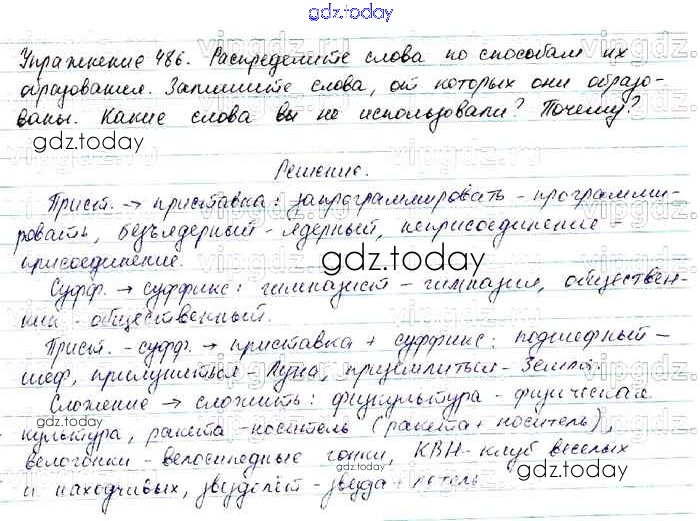 На страницах сайта gdz.today вы найдете учебный и вспомогательный материал, направленный на улучшения знаний школьной программы. ГДЗ - онлайн мир знаний Решение. Упражнения 486 Учебнику по Русскому языку для 7 класса Баранов, Ладыженская Просвещение, Просвещение 2015, 2022
