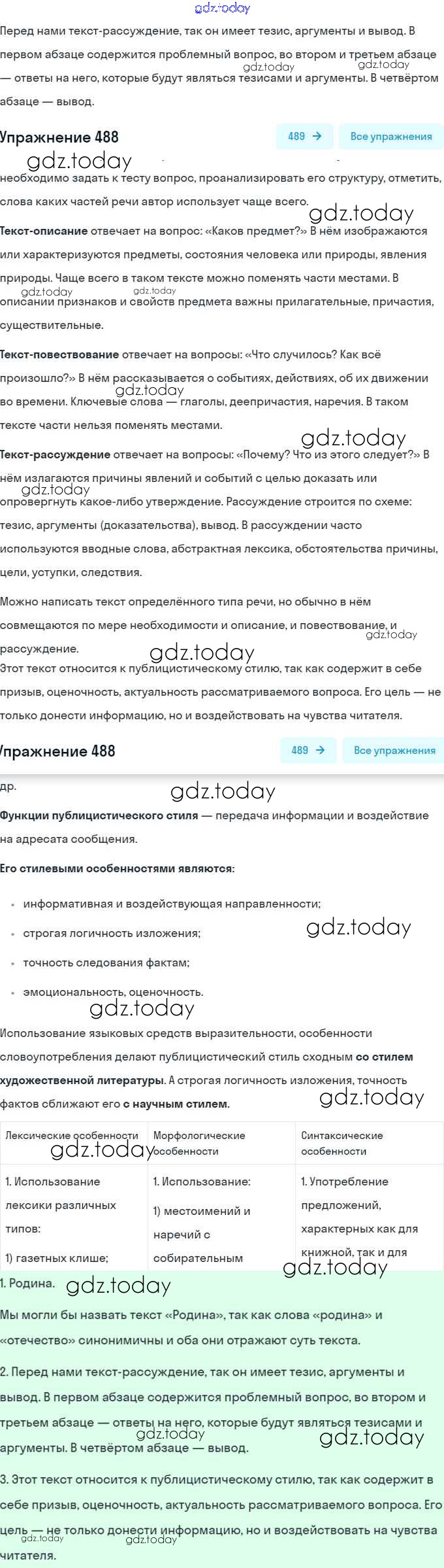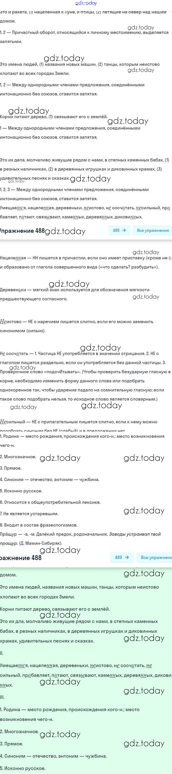 На страницах сайта gdz.today вы найдете учебный и вспомогательный материал, направленный на улучшения знаний школьной программы. ГДЗ - онлайн мир знаний Решение. Упражнения 488 Учебнику по Русскому языку для 7 класса Баранов, Ладыженская Просвещение, Просвещение 2015, 2022