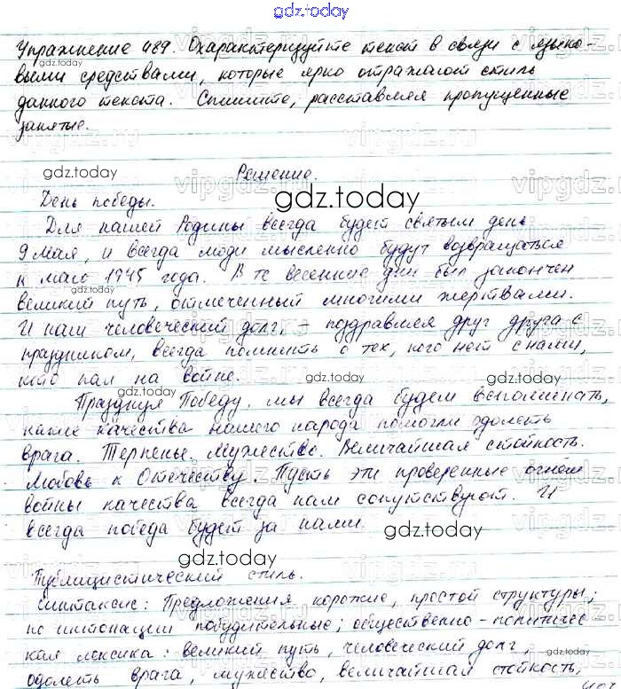 На страницах сайта gdz.today вы найдете учебный и вспомогательный материал, направленный на улучшения знаний школьной программы. ГДЗ - онлайн мир знаний Решение. Упражнения 489 Учебнику по Русскому языку для 7 класса Баранов, Ладыженская Просвещение, Просвещение 2015, 2022