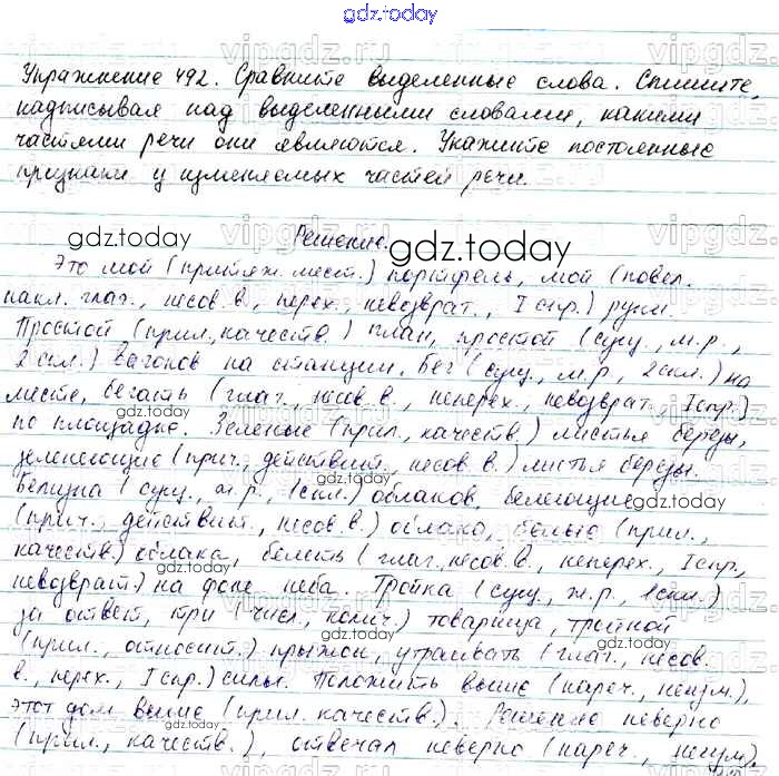 На страницах сайта gdz.today вы найдете учебный и вспомогательный материал, направленный на улучшения знаний школьной программы. ГДЗ - онлайн мир знаний Решение. Упражнения 492 Учебнику по Русскому языку для 7 класса Баранов, Ладыженская Просвещение, Просвещение 2015, 2022