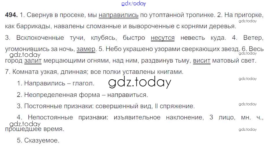 На страницах сайта gdz.today вы найдете учебный и вспомогательный материал, направленный на улучшения знаний школьной программы. ГДЗ - онлайн мир знаний Решение к упражнениям 494 Учебнику по Русскому языку для 7 класса Баранов, Ладыженская Просвещение УМК 2015