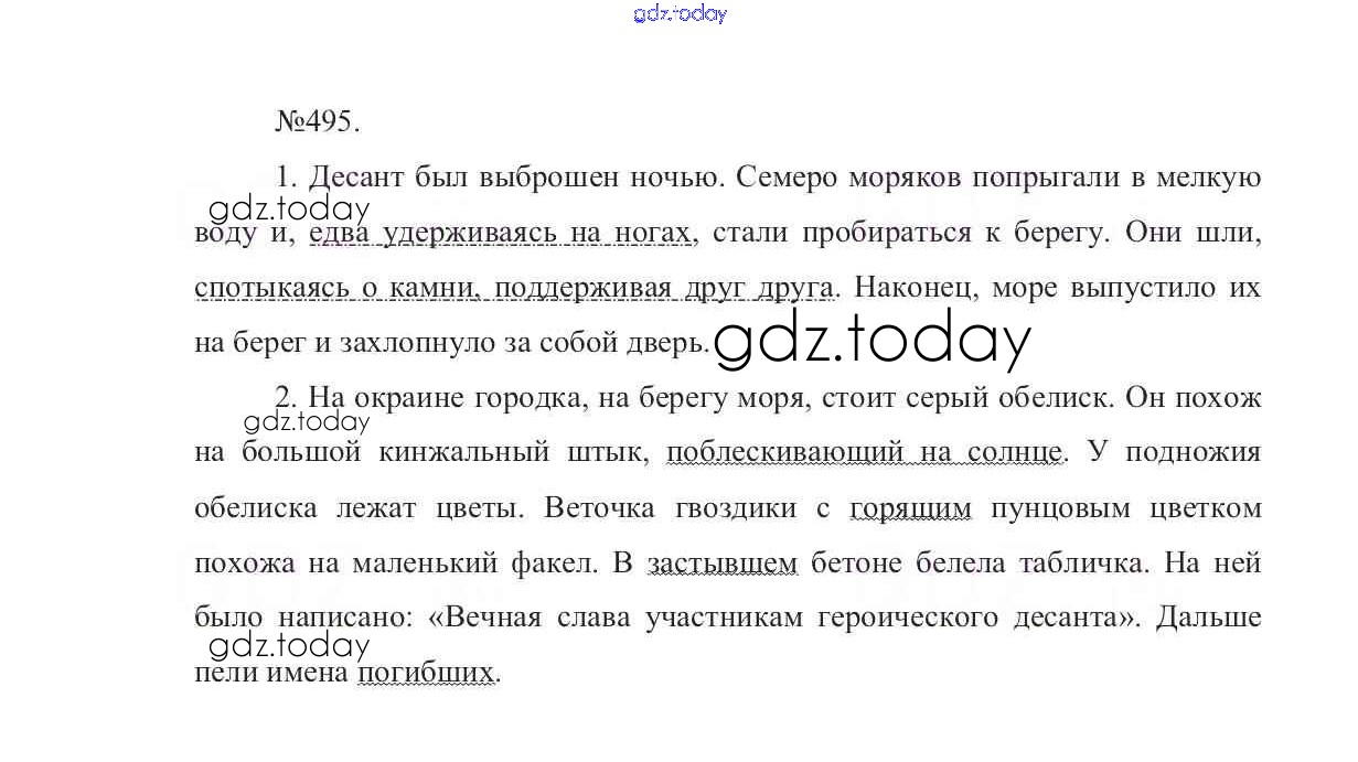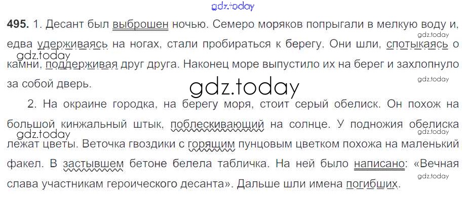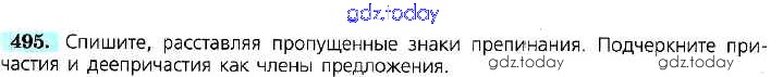 На страницах сайта gdz.today вы найдете учебный и вспомогательный материал, направленный на улучшения знаний школьной программы. ГДЗ - онлайн мир знаний Решение к упражнениям 495 Учебнику по Русскому языку для 7 класса Баранов, Ладыженская Просвещение УМК 2015
