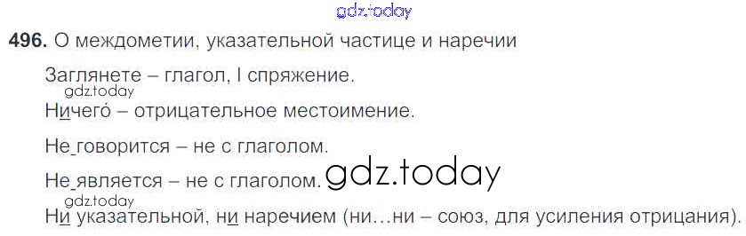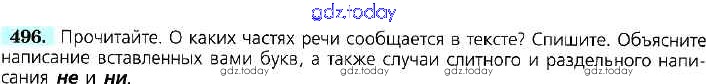 На страницах сайта gdz.today вы найдете учебный и вспомогательный материал, направленный на улучшения знаний школьной программы. ГДЗ - онлайн мир знаний Решение к упражнениям 496 Учебнику по Русскому языку для 7 класса Баранов, Ладыженская Просвещение УМК 2015