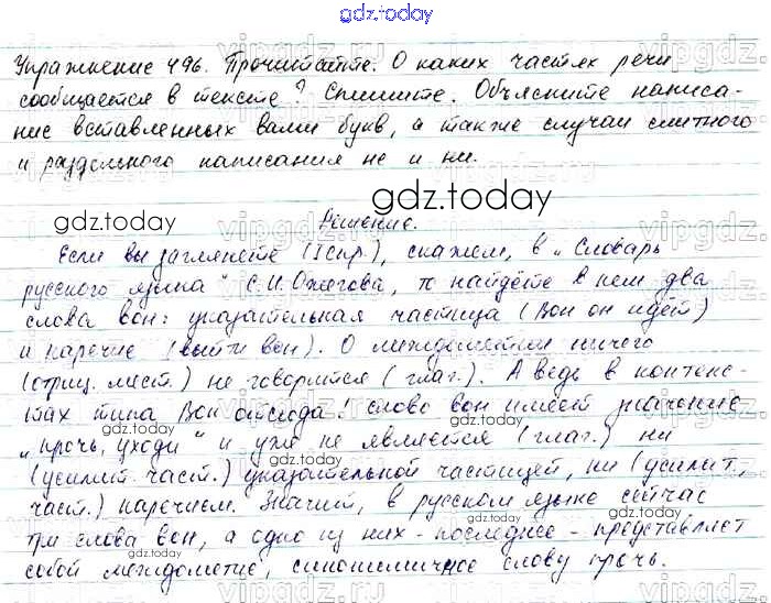 На страницах сайта gdz.today вы найдете учебный и вспомогательный материал, направленный на улучшения знаний школьной программы. ГДЗ - онлайн мир знаний Решение. Упражнения 496 Учебнику по Русскому языку для 7 класса Баранов, Ладыженская Просвещение, Просвещение 2015, 2022