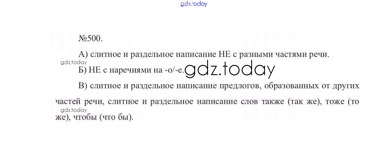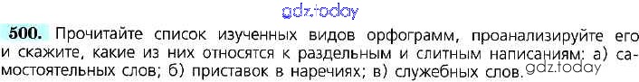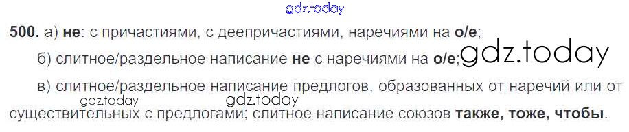 На страницах сайта gdz.today вы найдете учебный и вспомогательный материал, направленный на улучшения знаний школьной программы. ГДЗ - онлайн мир знаний Решение к упражнениям 500 Учебнику по Русскому языку для 7 класса Баранов, Ладыженская Просвещение УМК 2015