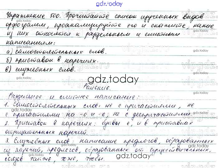 На страницах сайта gdz.today вы найдете учебный и вспомогательный материал, направленный на улучшения знаний школьной программы. ГДЗ - онлайн мир знаний Решение. Упражнения 500 Учебнику по Русскому языку для 7 класса Баранов, Ладыженская Просвещение, Просвещение 2015, 2022
