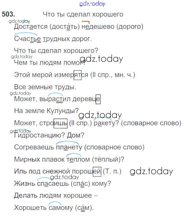 На страницах сайта gdz.today вы найдете учебный и вспомогательный материал, направленный на улучшения знаний школьной программы. ГДЗ - онлайн мир знаний Решение к упражнениям 503 Учебнику по Русскому языку для 7 класса Баранов, Ладыженская Просвещение УМК 2015