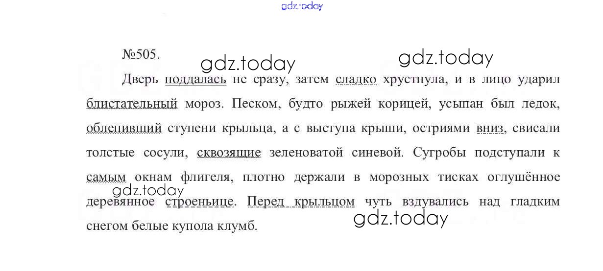 На страницах сайта gdz.today вы найдете учебный и вспомогательный материал, направленный на улучшения знаний школьной программы. ГДЗ - онлайн мир знаний Решение к упражнениям 505 Учебнику по Русскому языку для 7 класса Баранов, Ладыженская Просвещение УМК 2015