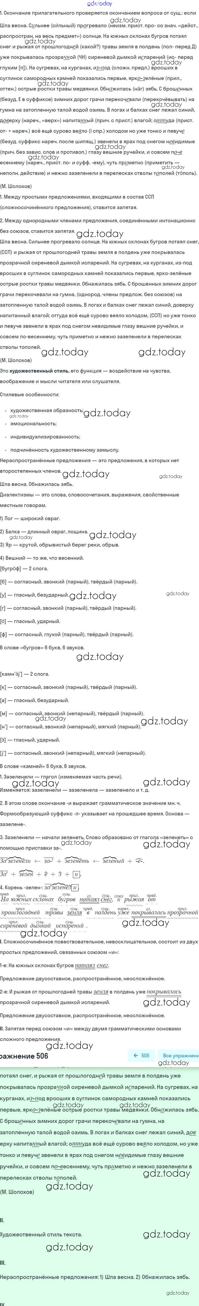 На страницах сайта gdz.today вы найдете учебный и вспомогательный материал, направленный на улучшения знаний школьной программы. ГДЗ - онлайн мир знаний Решение. Упражнения 506 Учебнику по Русскому языку для 7 класса Баранов, Ладыженская Просвещение, Просвещение 2015, 2022