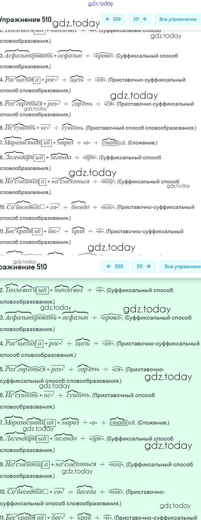 На страницах сайта gdz.today вы найдете учебный и вспомогательный материал, направленный на улучшения знаний школьной программы. ГДЗ - онлайн мир знаний Решение. Упражнения 510 Учебнику по Русскому языку для 7 класса Баранов, Ладыженская Просвещение, Просвещение 2015, 2022