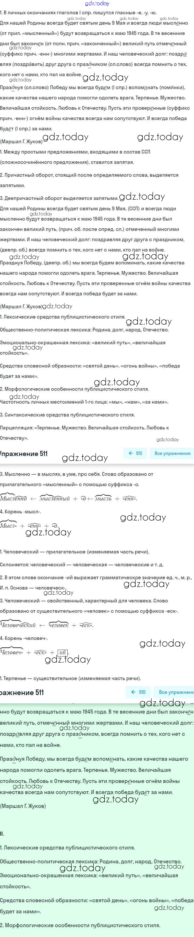 На страницах сайта gdz.today вы найдете учебный и вспомогательный материал, направленный на улучшения знаний школьной программы. ГДЗ - онлайн мир знаний Решение. Упражнения 511 Учебнику по Русскому языку для 7 класса Баранов, Ладыженская Просвещение, Просвещение 2015, 2022
