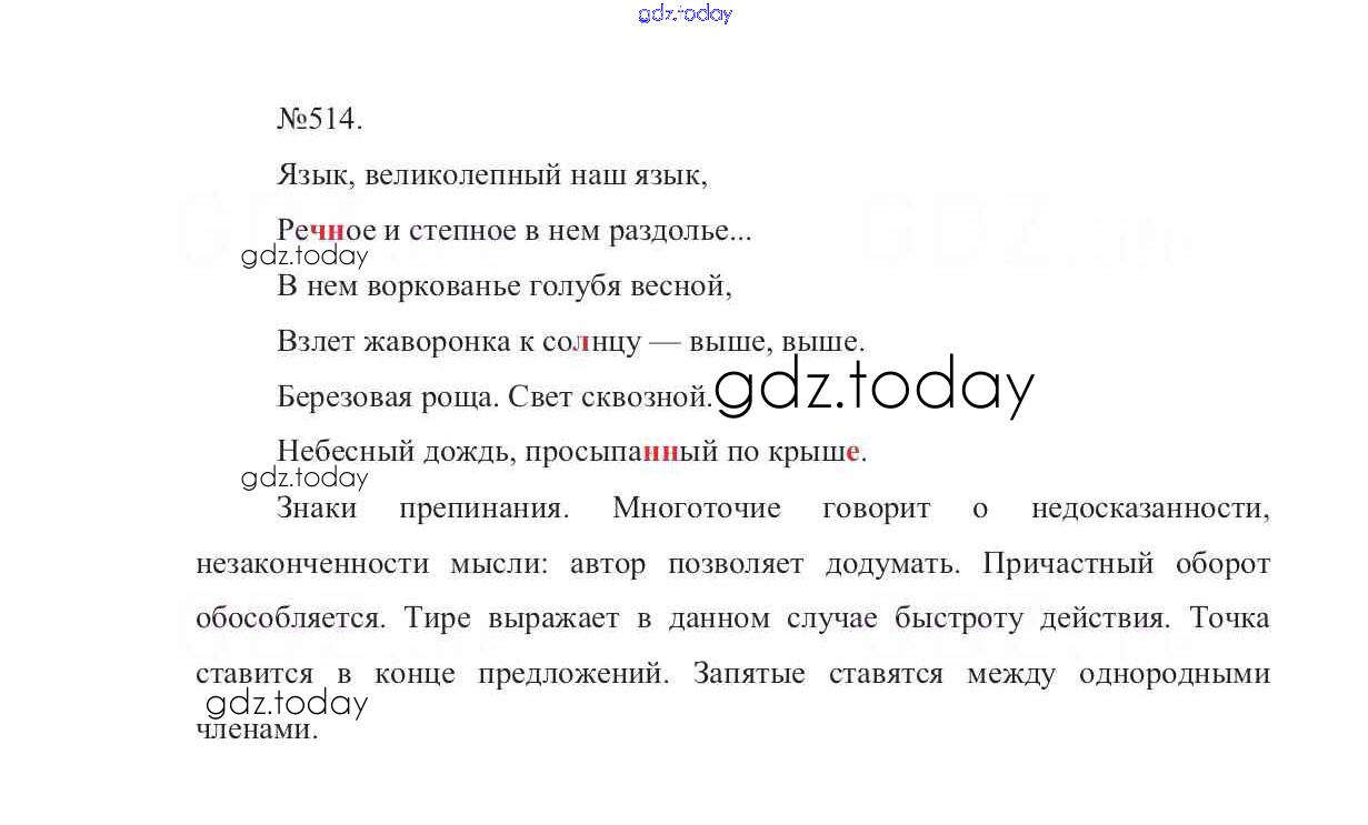 На страницах сайта gdz.today вы найдете учебный и вспомогательный материал, направленный на улучшения знаний школьной программы. ГДЗ - онлайн мир знаний Решение к упражнениям 514 Учебнику по Русскому языку для 7 класса Баранов, Ладыженская Просвещение УМК 2015