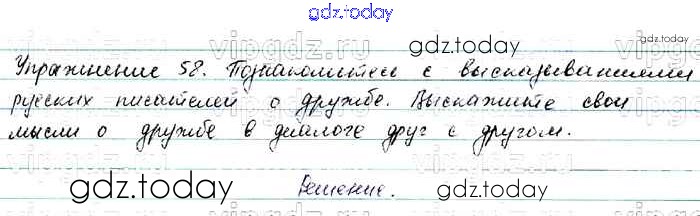 На страницах сайта gdz.today вы найдете учебный и вспомогательный материал, направленный на улучшения знаний школьной программы. ГДЗ - онлайн мир знаний Решение. Упражнения 58 Учебнику по Русскому языку для 7 класса Баранов, Ладыженская Просвещение, Просвещение 2015, 2022