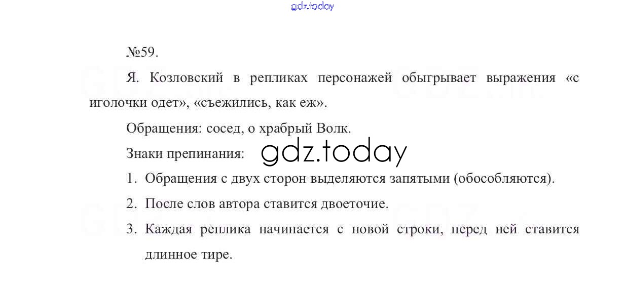 На страницах сайта gdz.today вы найдете учебный и вспомогательный материал, направленный на улучшения знаний школьной программы. ГДЗ - онлайн мир знаний Решение к упражнениям 59 Учебнику по Русскому языку для 7 класса Баранов, Ладыженская Просвещение УМК 2015