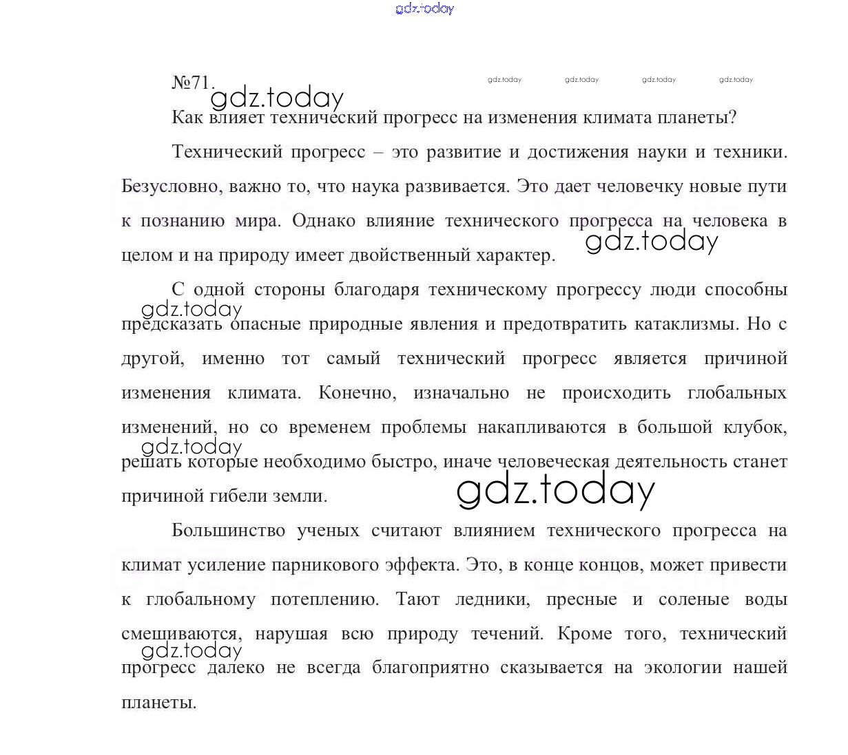 На страницах сайта gdz.today вы найдете учебный и вспомогательный материал, направленный на улучшения знаний школьной программы. ГДЗ - онлайн мир знаний Решение к упражнениям 71 Учебнику по Русскому языку для 7 класса Баранов, Ладыженская Просвещение УМК 2015