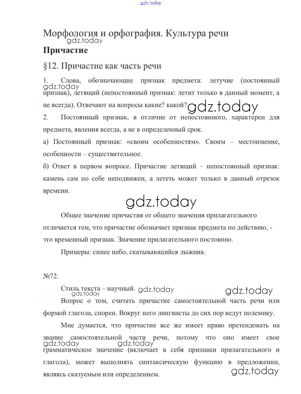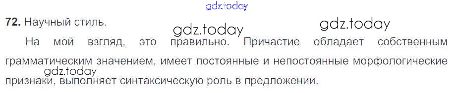 На страницах сайта gdz.today вы найдете учебный и вспомогательный материал, направленный на улучшения знаний школьной программы. ГДЗ - онлайн мир знаний Решение к упражнениям 72 Учебнику по Русскому языку для 7 класса Баранов, Ладыженская Просвещение УМК 2015