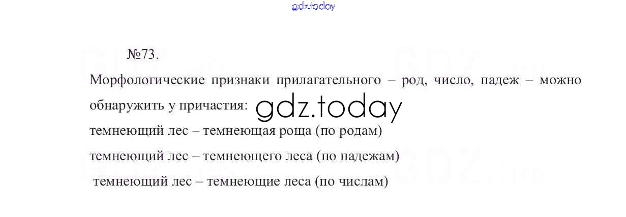 На страницах сайта gdz.today вы найдете учебный и вспомогательный материал, направленный на улучшения знаний школьной программы. ГДЗ - онлайн мир знаний Решение к упражнениям 73 Учебнику по Русскому языку для 7 класса Баранов, Ладыженская Просвещение УМК 2015