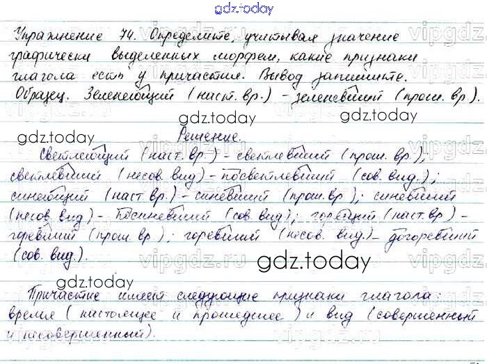 На страницах сайта gdz.today вы найдете учебный и вспомогательный материал, направленный на улучшения знаний школьной программы. ГДЗ - онлайн мир знаний Решение. Упражнения 74 Учебнику по Русскому языку для 7 класса Баранов, Ладыженская Просвещение, Просвещение 2015, 2022