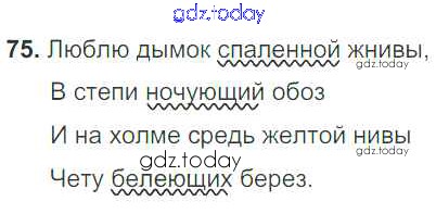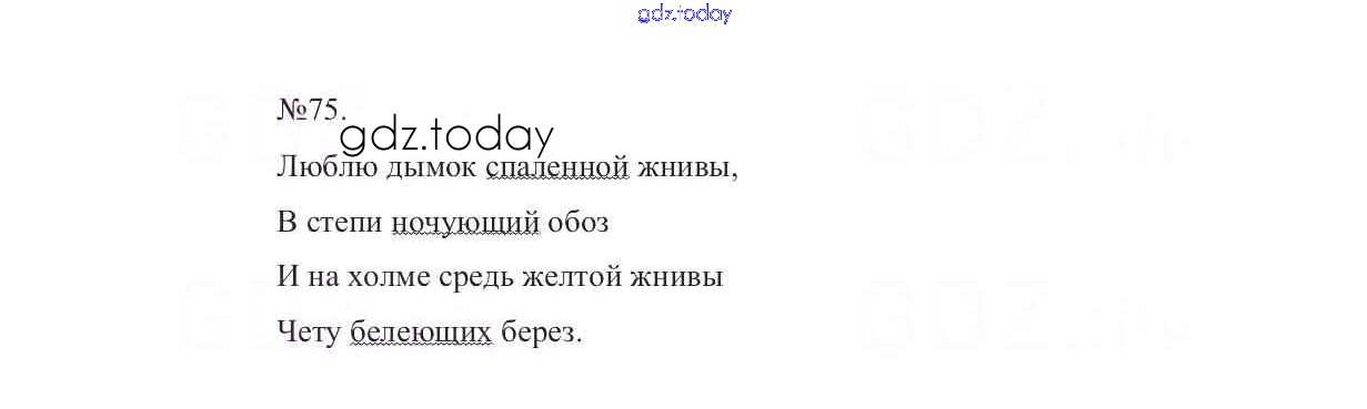 На страницах сайта gdz.today вы найдете учебный и вспомогательный материал, направленный на улучшения знаний школьной программы. ГДЗ - онлайн мир знаний Решение к упражнениям 75 Учебнику по Русскому языку для 7 класса Баранов, Ладыженская Просвещение УМК 2015