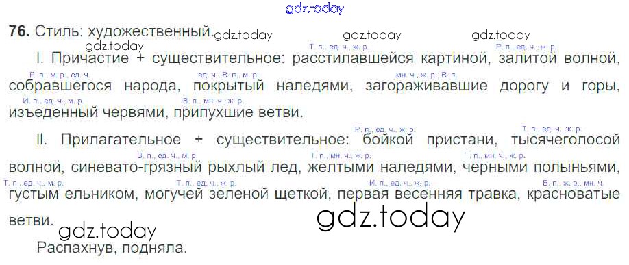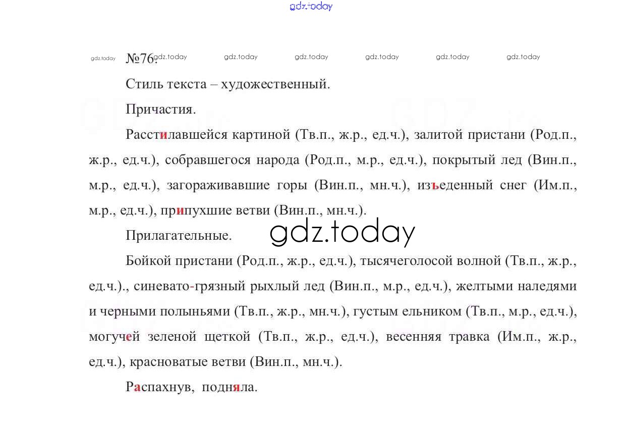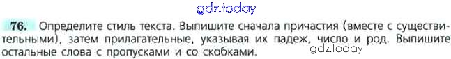 На страницах сайта gdz.today вы найдете учебный и вспомогательный материал, направленный на улучшения знаний школьной программы. ГДЗ - онлайн мир знаний Решение к упражнениям 76 Учебнику по Русскому языку для 7 класса Баранов, Ладыженская Просвещение УМК 2015