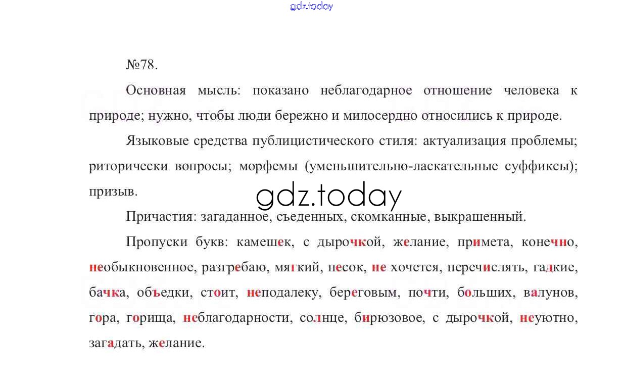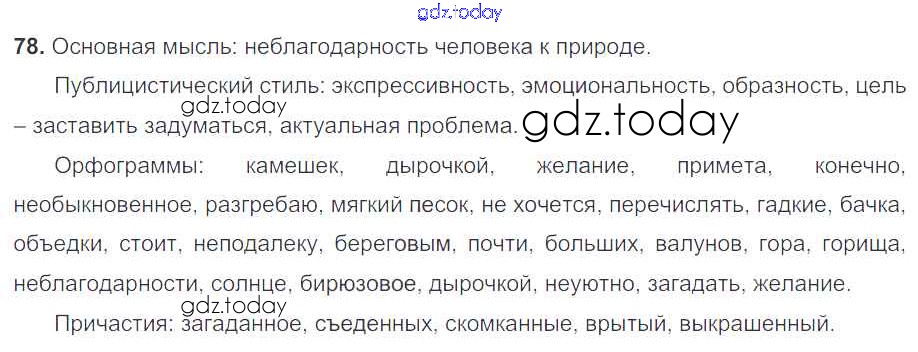 На страницах сайта gdz.today вы найдете учебный и вспомогательный материал, направленный на улучшения знаний школьной программы. ГДЗ - онлайн мир знаний Решение к упражнениям 78 Учебнику по Русскому языку для 7 класса Баранов, Ладыженская Просвещение УМК 2015
