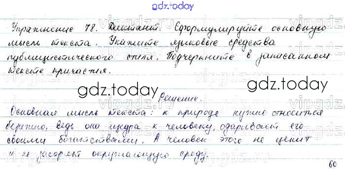На страницах сайта gdz.today вы найдете учебный и вспомогательный материал, направленный на улучшения знаний школьной программы. ГДЗ - онлайн мир знаний Решение. Упражнения 78 Учебнику по Русскому языку для 7 класса Баранов, Ладыженская Просвещение, Просвещение 2015, 2022