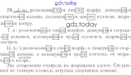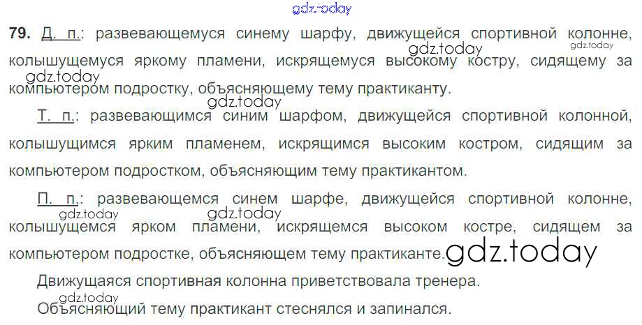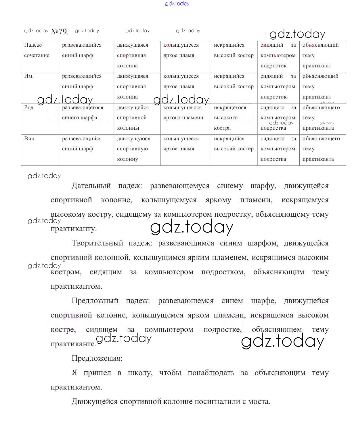 На страницах сайта gdz.today вы найдете учебный и вспомогательный материал, направленный на улучшения знаний школьной программы. ГДЗ - онлайн мир знаний Решение к упражнениям 79 Учебнику по Русскому языку для 7 класса Баранов, Ладыженская Просвещение УМК 2015