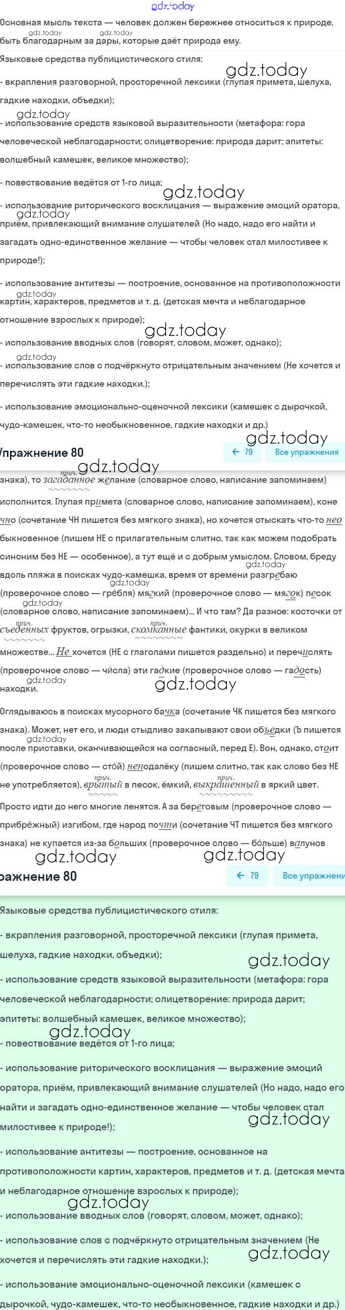 На страницах сайта gdz.today вы найдете учебный и вспомогательный материал, направленный на улучшения знаний школьной программы. ГДЗ - онлайн мир знаний Решение. Упражнения 80 Учебнику по Русскому языку для 7 класса Баранов, Ладыженская Просвещение, Просвещение 2015, 2022