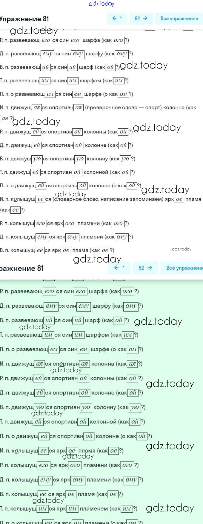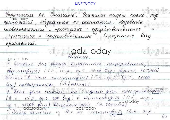 На страницах сайта gdz.today вы найдете учебный и вспомогательный материал, направленный на улучшения знаний школьной программы. ГДЗ - онлайн мир знаний Решение. Упражнения 81 Учебнику по Русскому языку для 7 класса Баранов, Ладыженская Просвещение, Просвещение 2015, 2022