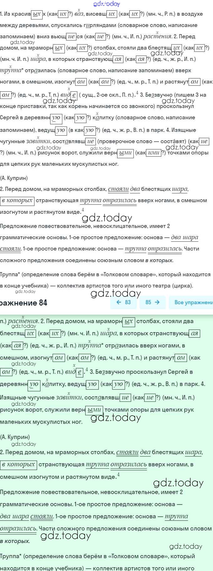 На страницах сайта gdz.today вы найдете учебный и вспомогательный материал, направленный на улучшения знаний школьной программы. ГДЗ - онлайн мир знаний Решение. Упражнения 84 Учебнику по Русскому языку для 7 класса Баранов, Ладыженская Просвещение, Просвещение 2015, 2022