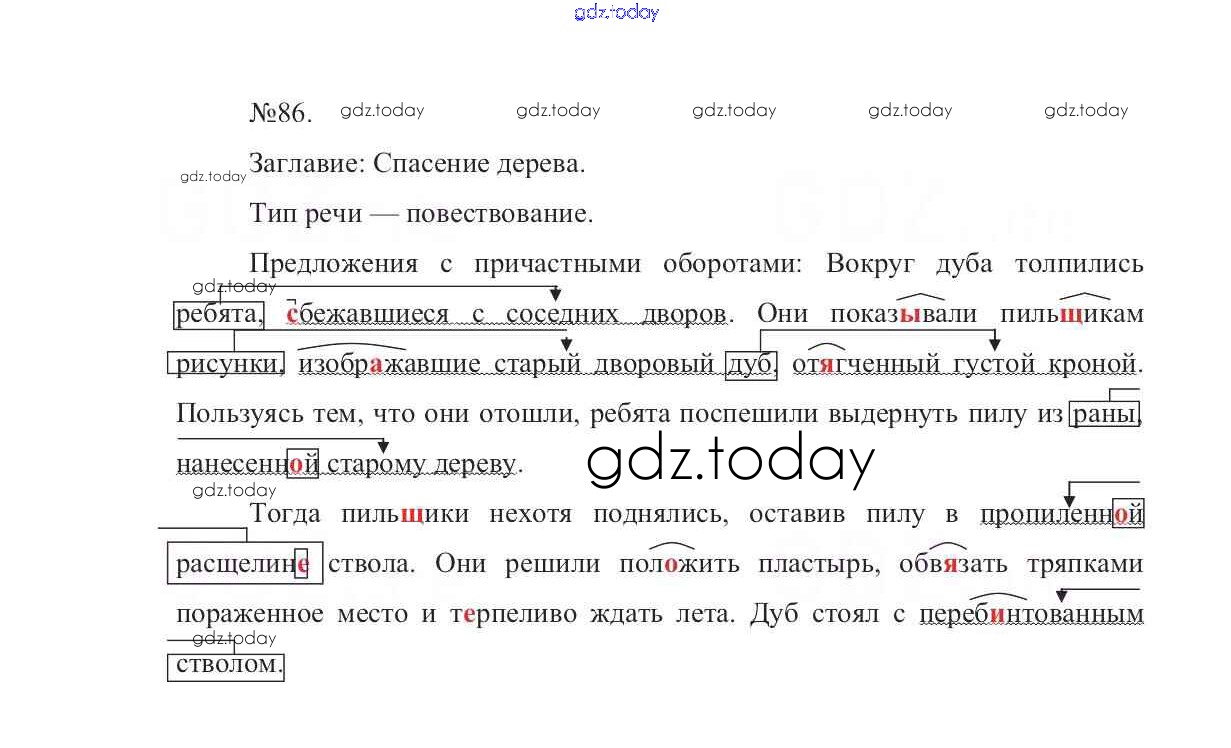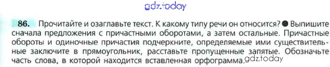 На страницах сайта gdz.today вы найдете учебный и вспомогательный материал, направленный на улучшения знаний школьной программы. ГДЗ - онлайн мир знаний Решение к упражнениям 86 Учебнику по Русскому языку для 7 класса Баранов, Ладыженская Просвещение УМК 2015
