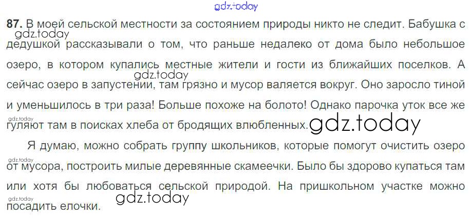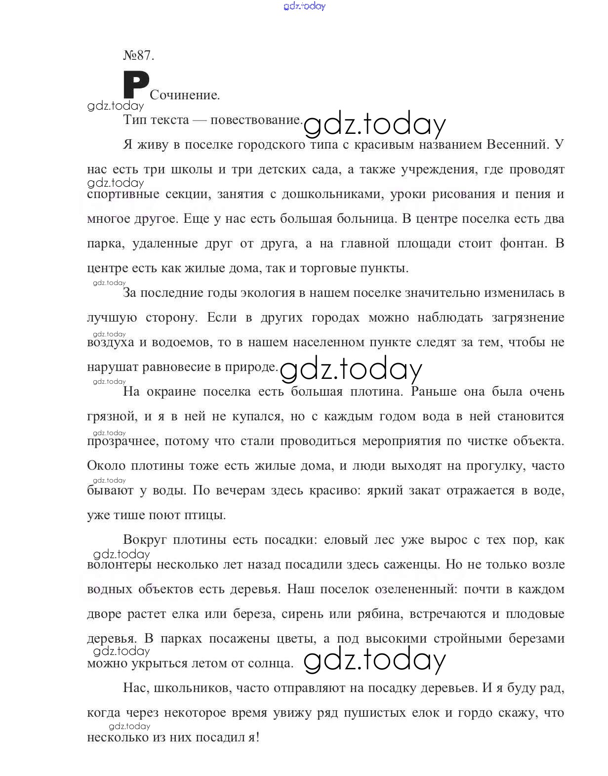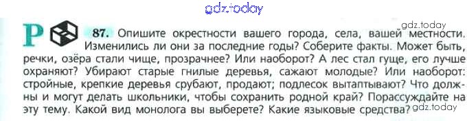 На страницах сайта gdz.today вы найдете учебный и вспомогательный материал, направленный на улучшения знаний школьной программы. ГДЗ - онлайн мир знаний Решение к упражнениям 87 Учебнику по Русскому языку для 7 класса Баранов, Ладыженская Просвещение УМК 2015