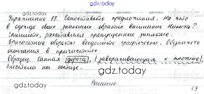 На страницах сайта gdz.today вы найдете учебный и вспомогательный материал, направленный на улучшения знаний школьной программы. ГДЗ - онлайн мир знаний Решение. Упражнения 88 Учебнику по Русскому языку для 7 класса Баранов, Ладыженская Просвещение, Просвещение 2015, 2022